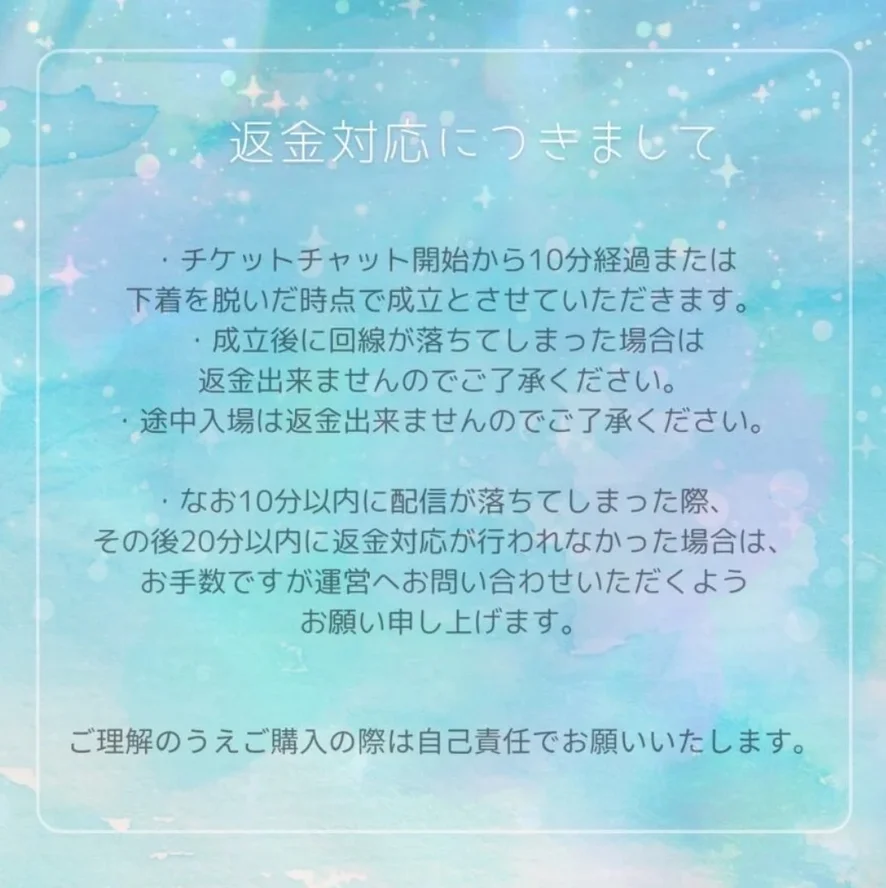 * 開始5分経過後、服を脱いだ状態での返金はいたしません。